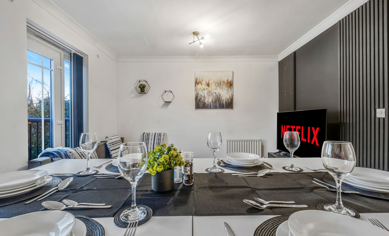 Experience modern comfort in this stylish 4-bedroom home in the heart of Hulme, just minutes from Manchester City Centre. Perfect for contractors, families, and business travellers, the property features a spacious lounge with a 55" HDTV, Netflix, and a 7-ft pool table. With fast WiFi, free parking, premium linens, and a fully equipped kitchen, it’s ideal for both short visits and extended stays. Close to Old Trafford, Trafford Centre, and Etihad Stadium — this is the perfect base for your Manchester stay.