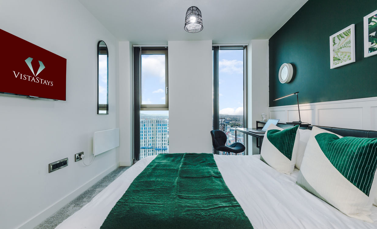 Experience city luxury from the 29th floor in this beautifully designed 2-bedroom apartment in East Manchester. Guests love the stylish interiors, pool and table tennis setup, PS4, superfast 250mbps Wi-Fi, and free Netflix. Perfect for work or leisure, each bedroom features a dedicated workspace, and the fully equipped kitchen is ideal for home dining. Just a short walk from Piccadilly Station and the city centre, this apartment offers breathtaking skyline views and a perfect mix of comfort, entertainment, and convenience.