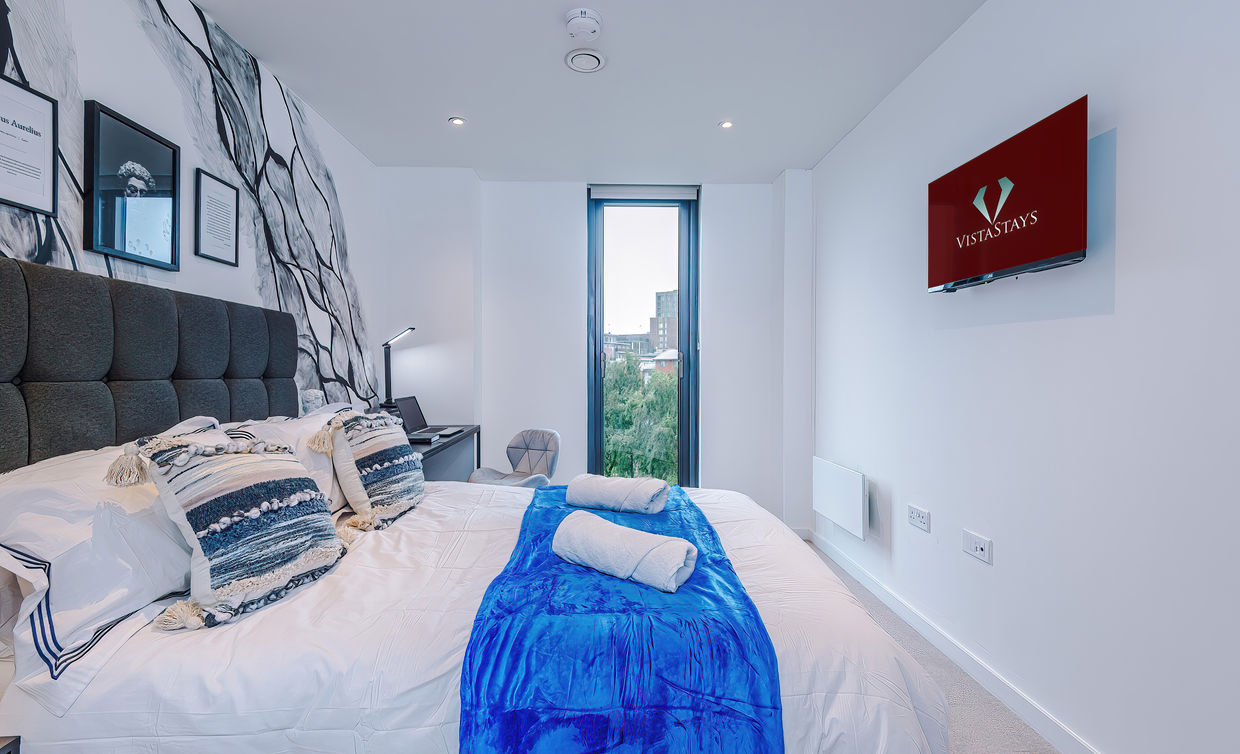 Discover “The Stoic Retreat” — a stylish 2-bedroom apartment on the north side of Manchester City Centre, perfect for families, contractors, or business travellers. This modern and elegant home sleeps up to 5 guests and features superfast 500mbps Wi-Fi, free Netflix, PS4, a dartboard, and access to a nearby gym. With a fully equipped kitchen, spacious lounge, premium linen, and free parking, it combines comfort and convenience. Just minutes from Victoria Station and the Arndale, it’s your peaceful city escape with all the essentials for work or leisure.